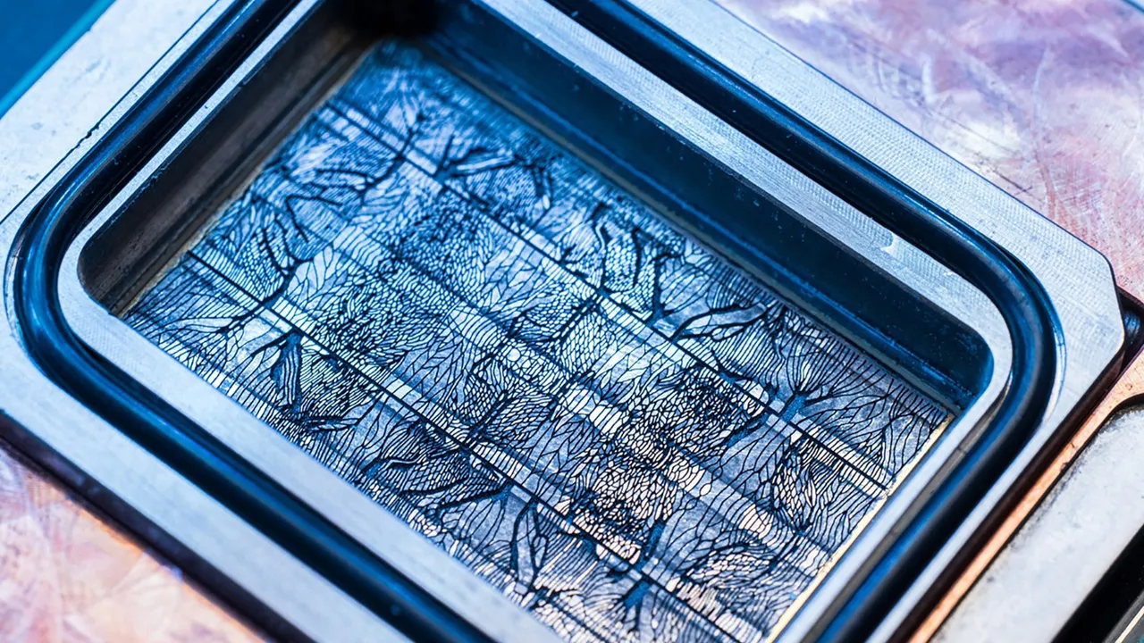 While prototyping microfluidics, Microsoft collaborated with Swiss startup Corintis, using AI optimization on a biology-inspired design. The etched channels on the chip resemble leaf veins, which the company says produce more efficient cooling routes.